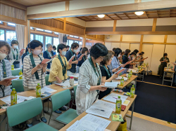 中旬には岡山県を梅花の派遣講師の先生が回られて勉強会があり、翌週には、曹洞宗岡山県宗務所婦人会総会および研修会が開催されました。梅花講も同じですが、高齢化で会員減少が止まらない婦人会の今後について、宗務所職員さんも交えてのテーブルディスカッションとグループ発表を行いました。