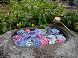 境内の花も次々に咲いて日々景色を変えております。今年は初めて手水鉢に紫陽花の花を浮かべ、花手水をこしらえてみました。回りには半夏生がたくさん咲いています。半夏生は片白草とも呼ばれ、葉の半分が白くなるドクダミ科の植物です。その涼し気な姿と紫陽花の花とが美しく好評でした。