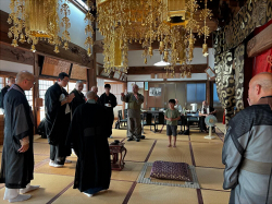 いよいよ来月下旬には、高梁市の龍徳院さまで晋山式(住職の座に就く就任式)がとり行われ、弟子(二男)の首座法戦式が控えています。お盆や施食会などの8月の行事が落ち着いたころ、役付きの僧侶が集合して、ならし(予行演習)が2日間にわたって行われました。まだまだ自信の無さからか声も小さくて、所作もおぼつかず、本番に間に合うのか不安で一杯ですが、DVDや書き物での予習とは違い、実際に動いてみて、雰囲気はつかんでくれたであろうと期待しています。親元から離れて生活しているので、日々指導できないことがもどかしいのですが、後は自分で研さんを積んでもらい本番には自信を持って臨んでもらいたいものです。