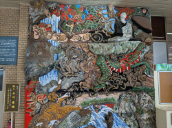 その二男は、夏休みの最後に三線のライブで新潟県魚沼市を訪れました。魚沼には曹洞宗の西福寺という有名なお寺があります。開山堂には、日本のミケランジェロと呼ばれる彫工、石川雲蝶作の彫刻や絵画が施されています。曹洞宗の開祖道元禅師様を題材にした作品が多く、中でも圧巻なのは堂内の天井三間四方全面に施された大彫刻「道元禅師猛虎調伏の図」で、透かし彫りの繊細さと極採色のあざやかさで観るものに感動を与えると言われます。残念ながら二男は、ライブが終わるとトンボ帰りだったので、参拝は叶わなかったのですが、最寄りの駅「浦佐駅」(新潟県には新幹線の停車駅が7つもあるそうです!)にはこの彫刻のレプリカがあったとかで、写真を送ってくれました。私も下手ながら仏像彫刻を趣味にしていますので、いつか本物を見に行きたいものです。 9月には秋彼岸があります。例年とおり、ご自宅へのお参りと、合同法要での戒名読み込みのどちらかを選んでいただきました。この秋から岡山へ帰ってきた長男と手分けしてお参りをしたので、随分と余裕を持ってまわることができました。山の整備や草刈りも手伝ってもらって随分と助かりました。法要に参加された方には、お茶のペットボトルとお菓子を持ち帰っていただきますが、今回のお菓子は石川県のビーバーというスナック菓子にしました。一昨年能登に行った際、見つけた菓子で、ほんの気持ちだけの石川県への被災地支援です。